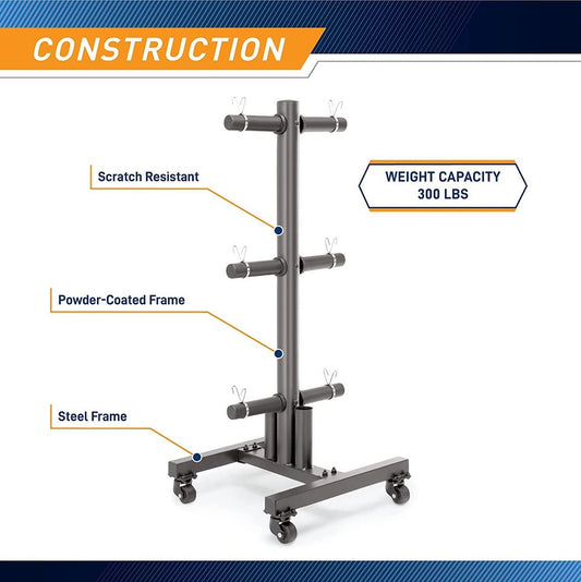 Olympic Weight Plate Rack with Transport Wheels Vertical Bar Holder for Home Gym Exercise