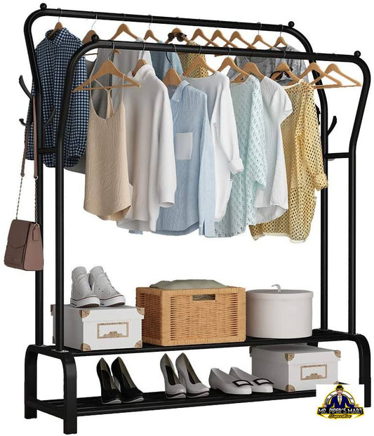 Garment Rack Freestanding Hanger Double Rods 4 Hooks, Black