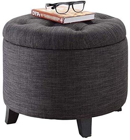Comfort Round Ottoman, Gray Fabric